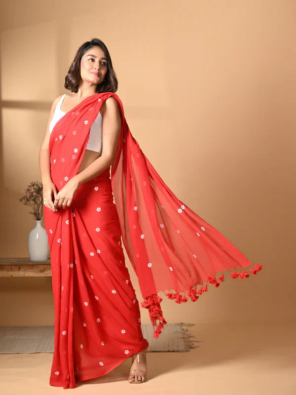 • Load image into Gallery viewer, Red Mulmul Cotton Saree